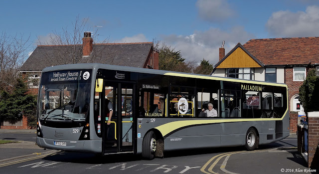 | Volvo 529 on service 5 turning into Whinpark Avenue at Blackpool Victoria Hospital |