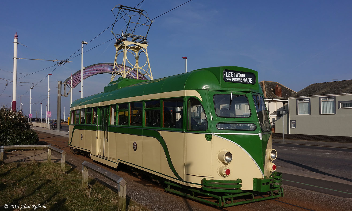 | Brush Car 630 (on loan from the Tramway Museum at Crich) passing the Tower |